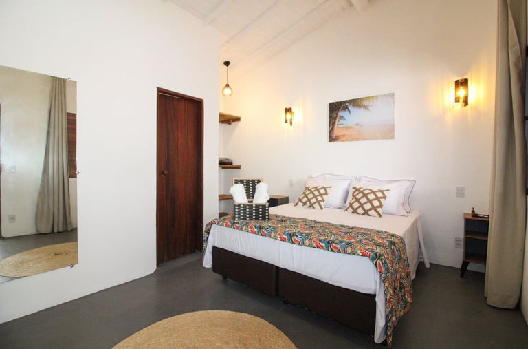 Seja bem-vindo a nossa Suíte Dupla, um verdadeiro refúgio de conforto e tranquilidade em Trancoso! Aqui, cada detalhe foi pensado para proporcionar uma estadia inesquecível.
